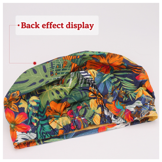 3. The triangle cutting is designed in the back of the cap so that your head will be more closely and your hair will not loose, it is so comfortable,beautiful and clean thatwillmake you more concentrated on your work. Furthermore,compared with traditional craft,the serging and hemming technology used in making the triangle cutting of our product can stop cloth cuttings falling everywhere.